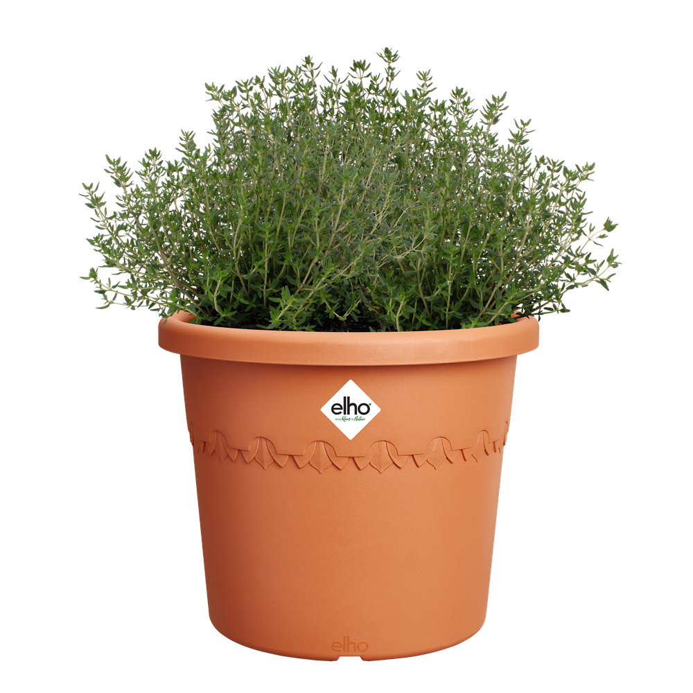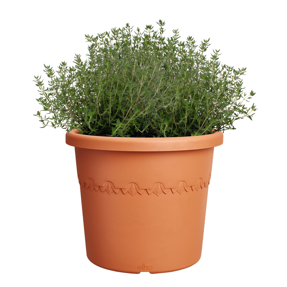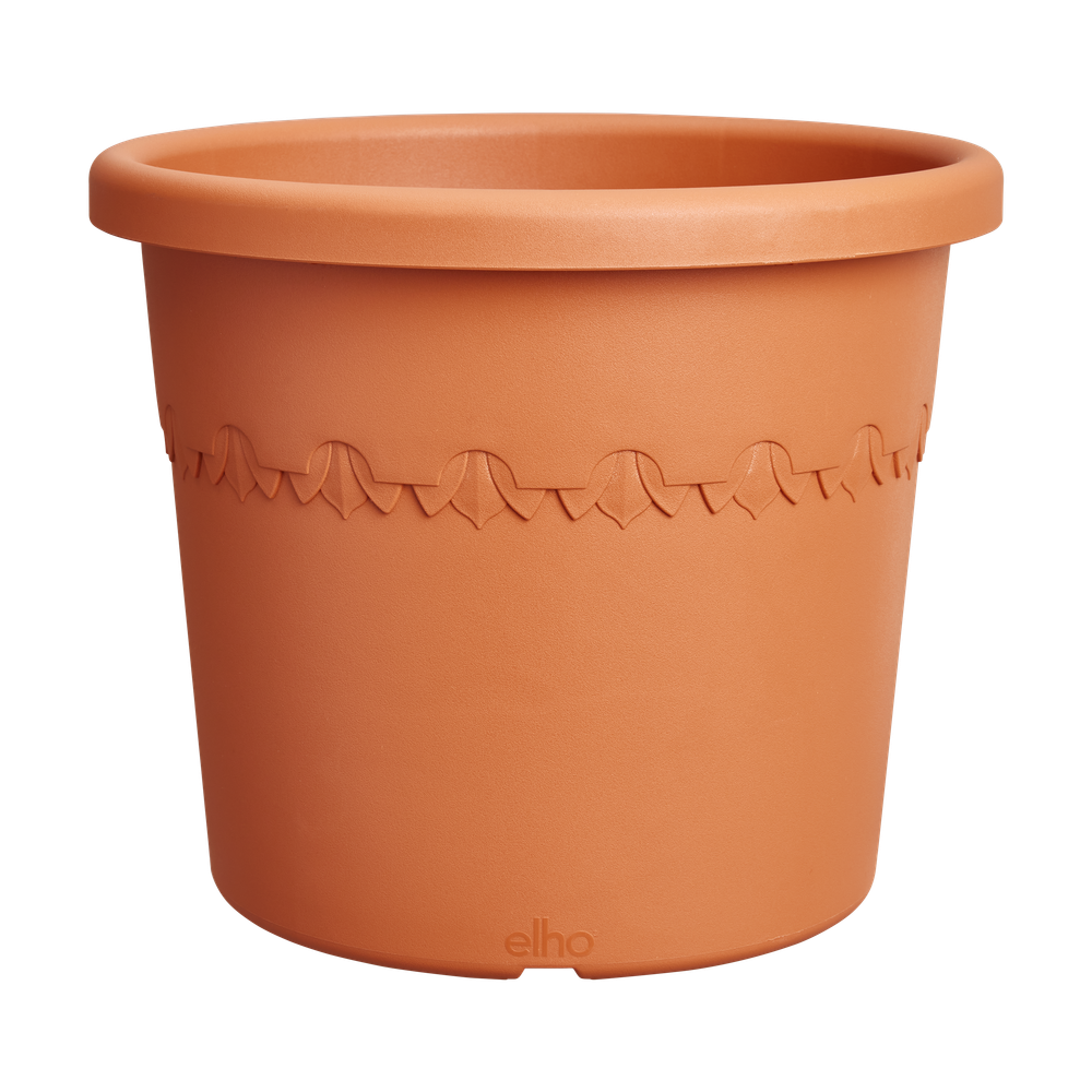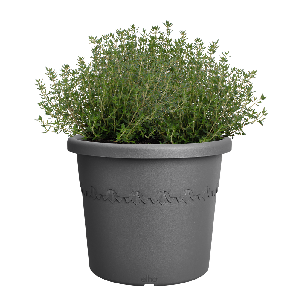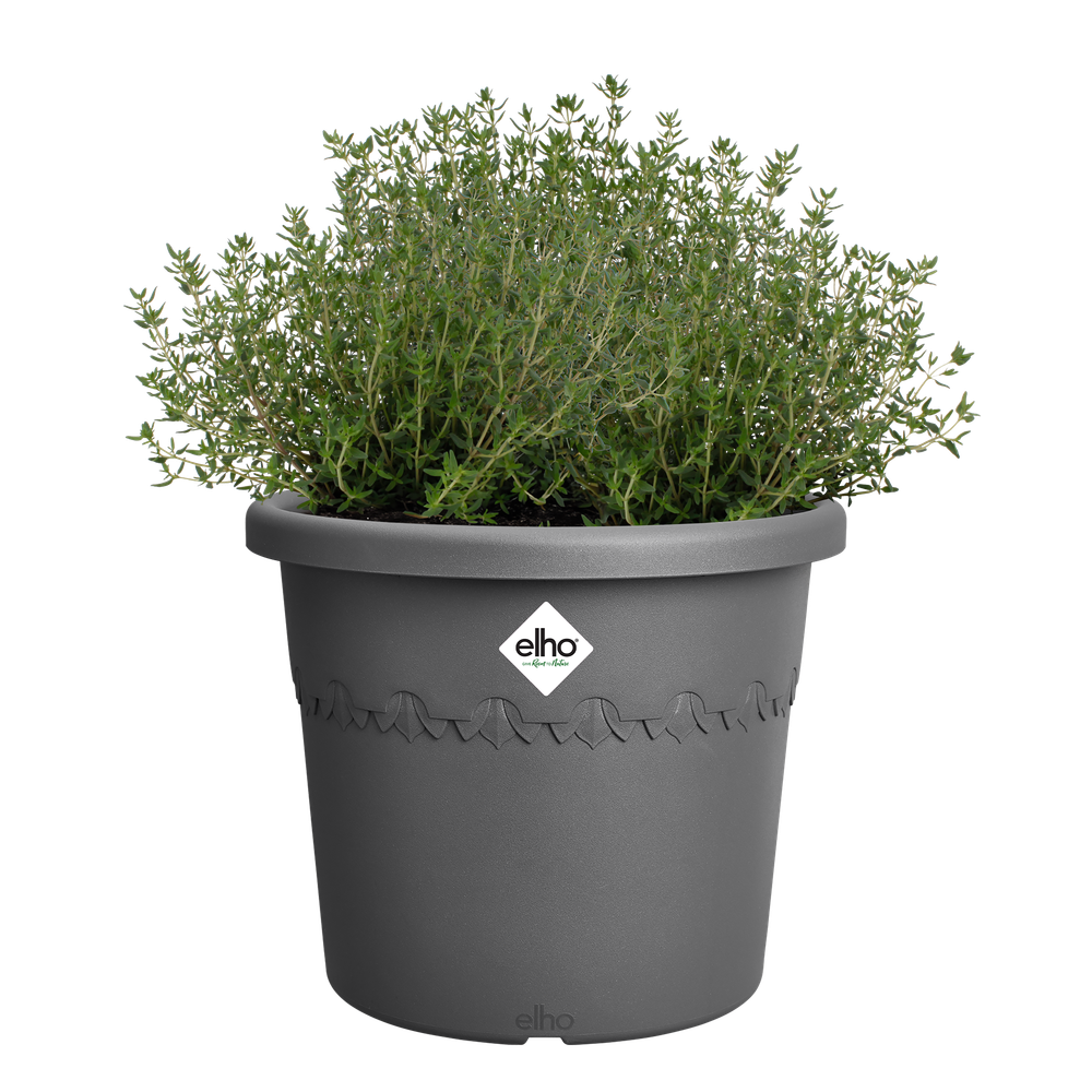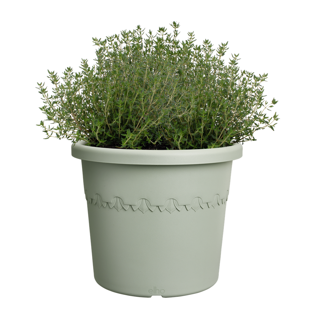 Geben Sie Ihren schönsten Pflanzen eine Bühne mit diesem zeitlosen Klassiker, der algarve-Kollektion von elho. Schaffen Sie Ihr eigenes mediterranes Ambiente in Ihrem Garten oder auf Ihrem Balkon mit der schönen, matten Farbpalette und dem anmutigen Blumenmuster. Dank der Räder können Sie diesen großen, runden Blumentopf einfach an den idealen Platz auf Ihrer Terrasse rollen. Der spezielle, leicht erhöhte Boden sorgt für eine optimale Drainage und Belüftung, sodass Sie sich noch länger an Ihren Pflanzen erfreuen können. Auch dieser Kunstoff-Blumentopf ist von bester Qualität, sodass Sie ihn Saison für Saison verwenden können. Sie können sicher sein, dass dieser Topf mit Liebe zur Natur hergestellt wurde, denn er besteht zu 100 % aus recycelten Materialien, ist selbst zu 100 % recycelbar und wurde mit Windenergie hergestellt.