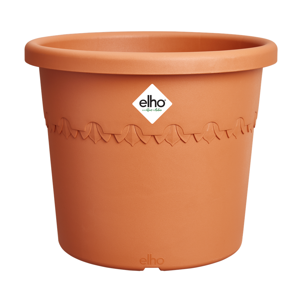 Geben Sie Ihren schönsten Pflanzen eine Bühne mit diesem zeitlosen Klassiker, der algarve-Kollektion von elho. Schaffen Sie Ihr eigenes mediterranes Ambiente in Ihrem Garten oder auf Ihrem Balkon mit der schönen, matten Farbpalette und dem anmutigen Blumenmuster. Dank der Räder können Sie diesen großen, runden Blumentopf einfach an den idealen Platz auf Ihrer Terrasse rollen. Der spezielle, leicht erhöhte Boden sorgt für eine optimale Drainage und Belüftung, sodass Sie sich noch länger an Ihren Pflanzen erfreuen können. Auch dieser Kunstoff-Blumentopf ist von bester Qualität, sodass Sie ihn Saison für Saison verwenden können. Sie können sicher sein, dass dieser Topf mit Liebe zur Natur hergestellt wurde, denn er besteht zu 100 % aus recycelten Materialien, ist selbst zu 100 % recycelbar und wurde mit Windenergie hergestellt.