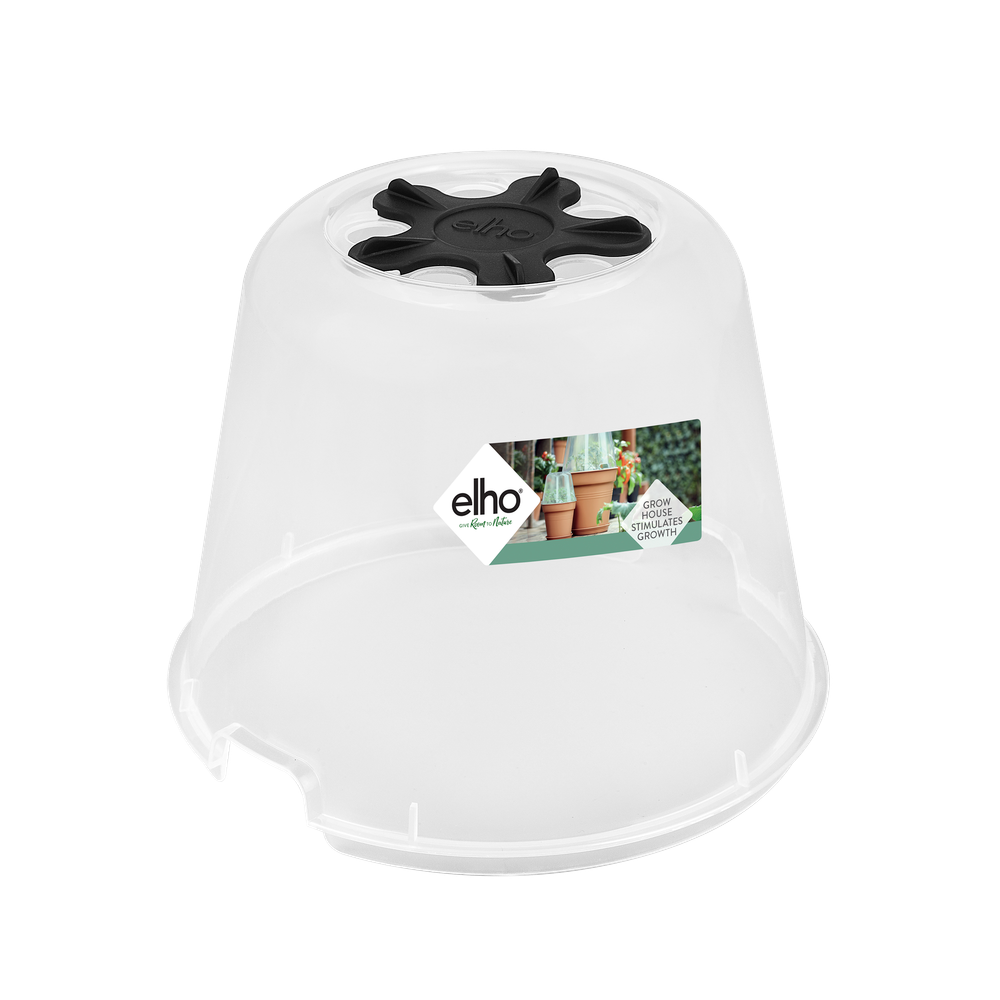 Lassen Sie Pflanzen, Stecklinge und selbst gezogene Gemüsepflanzen mit dem green basics Anzuchthaus noch schneller wachsen. Die Abdeckhaube setzen Sie einfach auf einen der green basics Anzuchttöpfe. Ideal für hochwachsende Kräuter wie Schnittlauch und Basilikum oder auch Tomatenpflanzen. Vom Samen bis zur Ernte, mit dem Anzuchthaus round wachsen alle Pflanzen unter idealen Bedingungen. Mit der oben in der Haube befindlichen Lüftungsöffnung können Sie die Sauerstoffzufuhr und Temperatur regeln. Damit sorgen Sie für perfekte Wachstumsbedingungen für Saatgut, Stecklinge und Pflanzen. Mit der Abdeckhaube schützen Sie außerdem Saatgut, Stecklinge und Ernte vor Ungezieferbefall. Die kleine Version dieser Kollektion mit einem Durchmesser von 17 cm wurde speziell für Kräuter entwickelt. Die große mit 30 cm Durchmesser wiederum eignet sich hervorragend für Gemüse und andere Pflanzen. Alle Produkte der green basics Kollektion von elho bestehen aus recyceltem Kunststoff. Die Abdeckhaube können Sie problemlos in die Sonne stellen, denn der eingebaute UV-Filter verhindert ein Überhitzen der Stecklinge und Pflanzen. Außerdem ist die Haube pflegeleicht und einfach zu reinigen. Das Anzuchthaus ist witterungsbeständig und für Temperaturen bis zu -40° C geeignet. Kein Problem, wenn Sie die Haube versehentlich umstoßen oder fallenlassen, denn die green basics Produkte von elho sind bruchsicher.