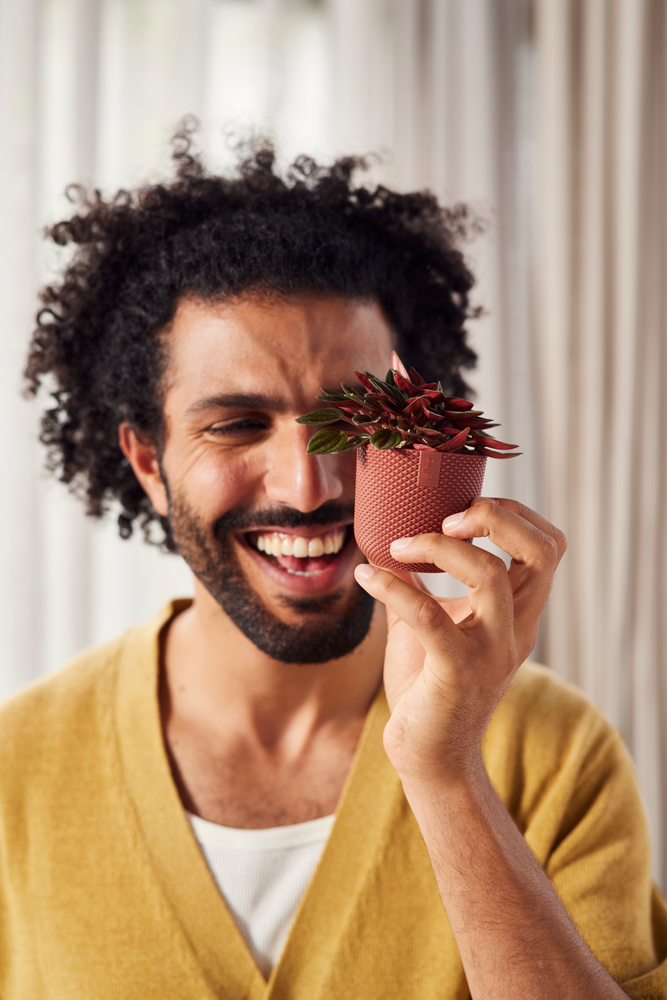 Erwecke deine Einrichtung mit dem elho jazz rund mini zum Leben. Seine weichen Rundungen und die verspielte Struktur verleihen dem kleinen Topf ein natürliches Aussehen, das jeden Raum aufhellt. Ideal für kleine Pflanzen und perfekt zum Kombinieren und Variieren!