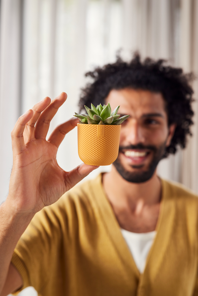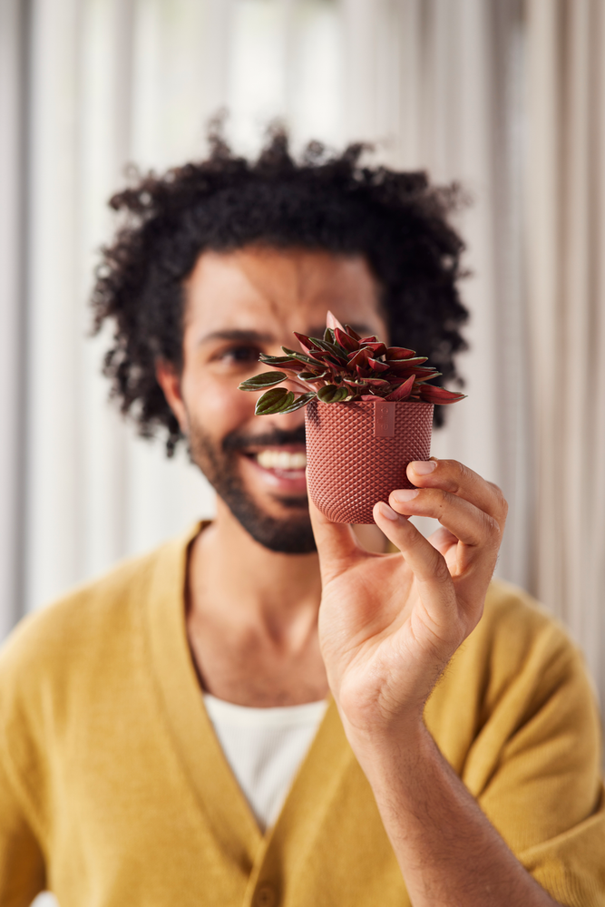 Erwecke deine Einrichtung mit dem elho jazz rund mini zum Leben. Seine weichen Rundungen und die verspielte Struktur verleihen dem kleinen Topf ein natürliches Aussehen, das jeden Raum aufhellt. Ideal für kleine Pflanzen und perfekt zum Kombinieren und Variieren!