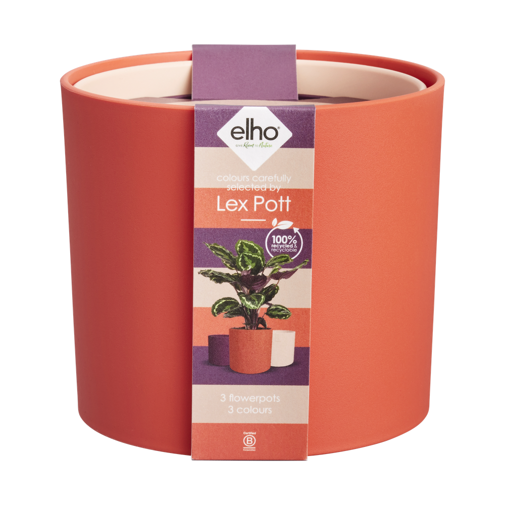 Der Name ist Programm. Wenn ein preisgekröntes niederländisches Designtalent Lex Pott heißt, kann es nicht anders, als eine großartige Partnerschaft mit elho einzugehen. Und genau so ist es geschehen. Die elho x lex pott Kollektion besteht aus stilvollen Blumentopfsets mit einer Reihe unerwarteter, aber überraschend harmonischer Farbpaletten. Alle Blumentöpfe bestehen aus 100% recyceltem Kunststoff und sind zu 100% recycelbar. Das macht diese Kollektion in jeder Hinsicht zeitlos. Durch die Wahl eines elho x lex pott-Sets als Geschenk, verschenkst du nicht nur ein Stück Design für Zuhause sondern auch Liebe zur Natur.