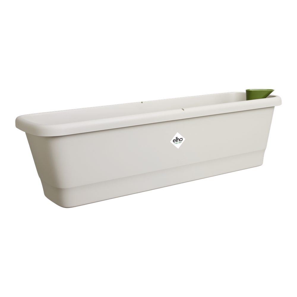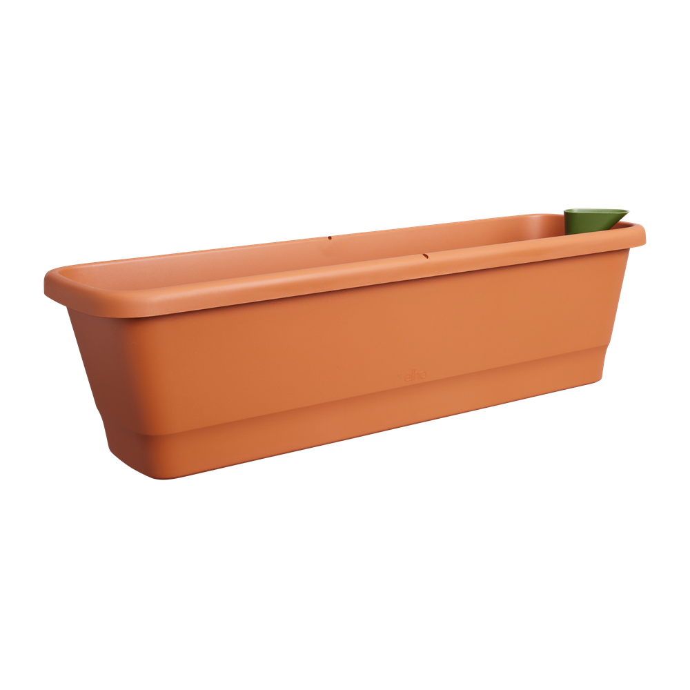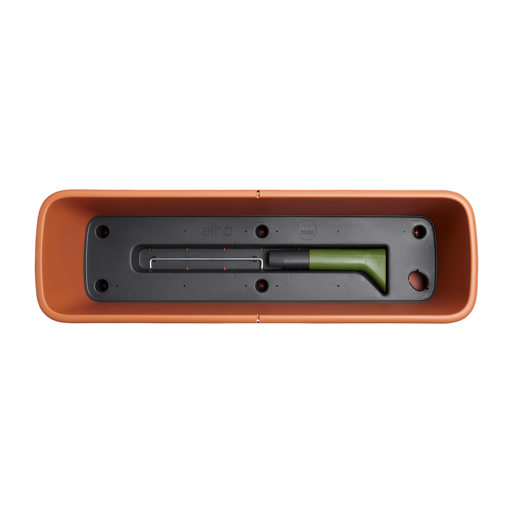 Die neue noa Balkonkastenfamilie ist nicht nur von außen schön, die wahre Kraft steckt auch im Inneren. Der Speicher lässt sich über einen praktischen Trichter einfach befüllen. Achten Sie nur darauf, den Stopfen zu entfernen, damit das überschüssige Wasser abfließen kann. Wenn Sie den Behälter an einem Ort verwenden möchten, an dem es nicht regnet, wie zum Beispiel unter einem Dach, können Sie den Stopfen stecken lassen. Alle Teile sind im Lieferumfang enthalten und müssen nur noch in den Pflanzbehälter eingesetzt werden. Alles, woran Sie denken müssen, ist, Ihrem Balkonpflanzer einen schönen Platz zu geben. Wenn Sie Ihren Balkonkasten aufhängen wollen, achten Sie darauf, dass er waagerecht ausgerichtet ist, damit die Wasserstandsanzeige richtig funktioniert. Noch einfacher für Sie: Verwenden Sie unsere Balkonhaken (Set gesondert erhältlich), um Ihren Pflanzbehälter perfekt aufzuhängen. Der noa Balkonkasten ist außerdem von bester Qualität, so dass Sie es Saison für Saison verwenden können. Sie können sich darauf verlassen, dass dieser Topf mit viel Liebe zur Natur hergestellt wurde. So besteht er zu 100 % aus recyceltem Kunststoff, wird mit Windenergie hergestellt und ist zudem vollständig recycelbar.