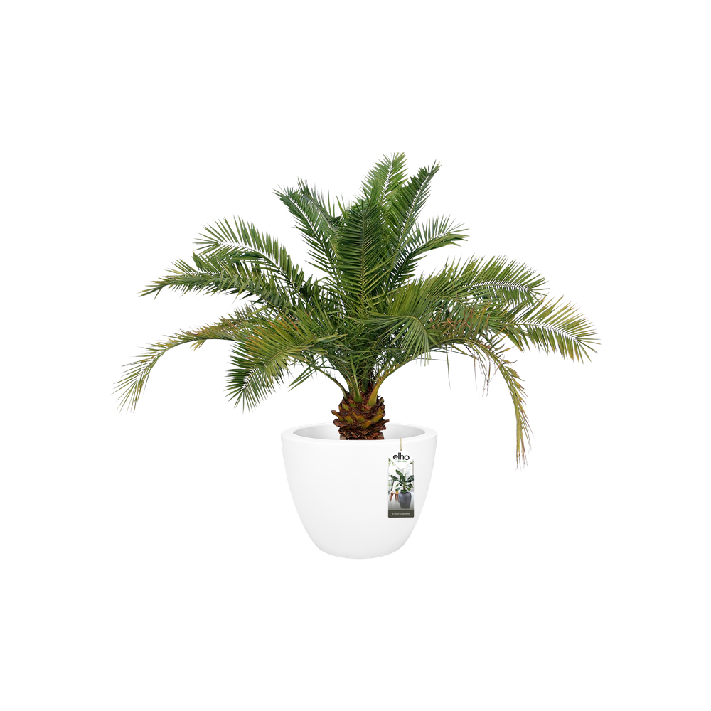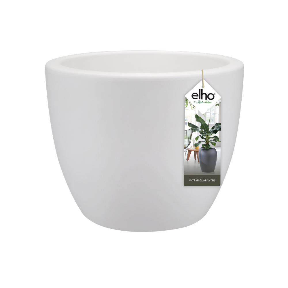 Der Pure Soft Round ist ein praktischer Blumentopf für drinnen und draußen. Dieser leichte Blumentopf ist durch die Rollen an der Unterseite einfach zu bewegen, sogar wenn Sie ihn mit mittelgroßen Pflanzen, Gräsern oder Bäumen bepflanzen. Die runde Form sorgt dafür, dass der Topf in jede Einrichtung, auf jede Terrasse oder jeden Balkon passt. Und gleichzeitig ist er wunderbar mit anderen Größen aus der Pure Round-Kollektion zu kombinieren. Der Topf ist aus hochwertigem Kunststoff gefertigt, wodurch er in die pralle Sonne gestellt werden kann - ohne, dass die Farben verblassen. Darüber hinaus ist er einfach sauber zu machen, wetterbeständig und für Temperaturen bis zu -40 Grad geeignet. Sollten Sie den Topf aus Versehen einmal umstoßen oder fallen lassen, ist dies kein Problem, denn der Pure Soft Round von elho ist unzerbrechlich! Zudem ist dieser Blumentopf doppelwändig, was zu einer hochwärtigeren Austrahlung beiträgt. Möchten Sie diesen Blumentopf draußen verwenden, dann vergessen Sie nicht, das Bohrloch an der Innenseite des Topfes durchzubohren. Dies sorgt dafür, dass das überschüssige Wasser abfließen kann und die Wurzeln nicht verfaulen.