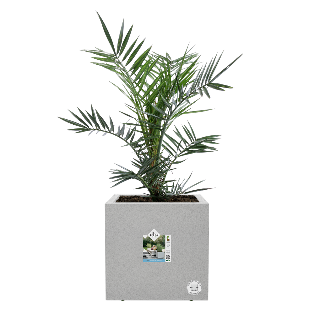 Die vivo next Pflanzbehälter geben Ihrem Garten oder Zuhause durch ihr modernes Design und die rechteckige Form einen frischen Look. Dank des integrierten Wasserspeichers können Sie Ihre Pflanzen mühelos versorgen. Sie können ihn drinnen und draußen verwenden, mit Hilfe des mitgelieferten Stopfens. Dank der integrierten Rollen versetzen Sie den Pflanzbehälter ganz einfach. Sie können sich darauf verlassen, dass dieser Blumentopf mit Liebe zur Natur gemacht wurde. Er besteht aus recyceltem Kunststoff, wurde produziert mit Windenergie von unserem eigenen Windrad und ist außerdem vollständig recyclebar.